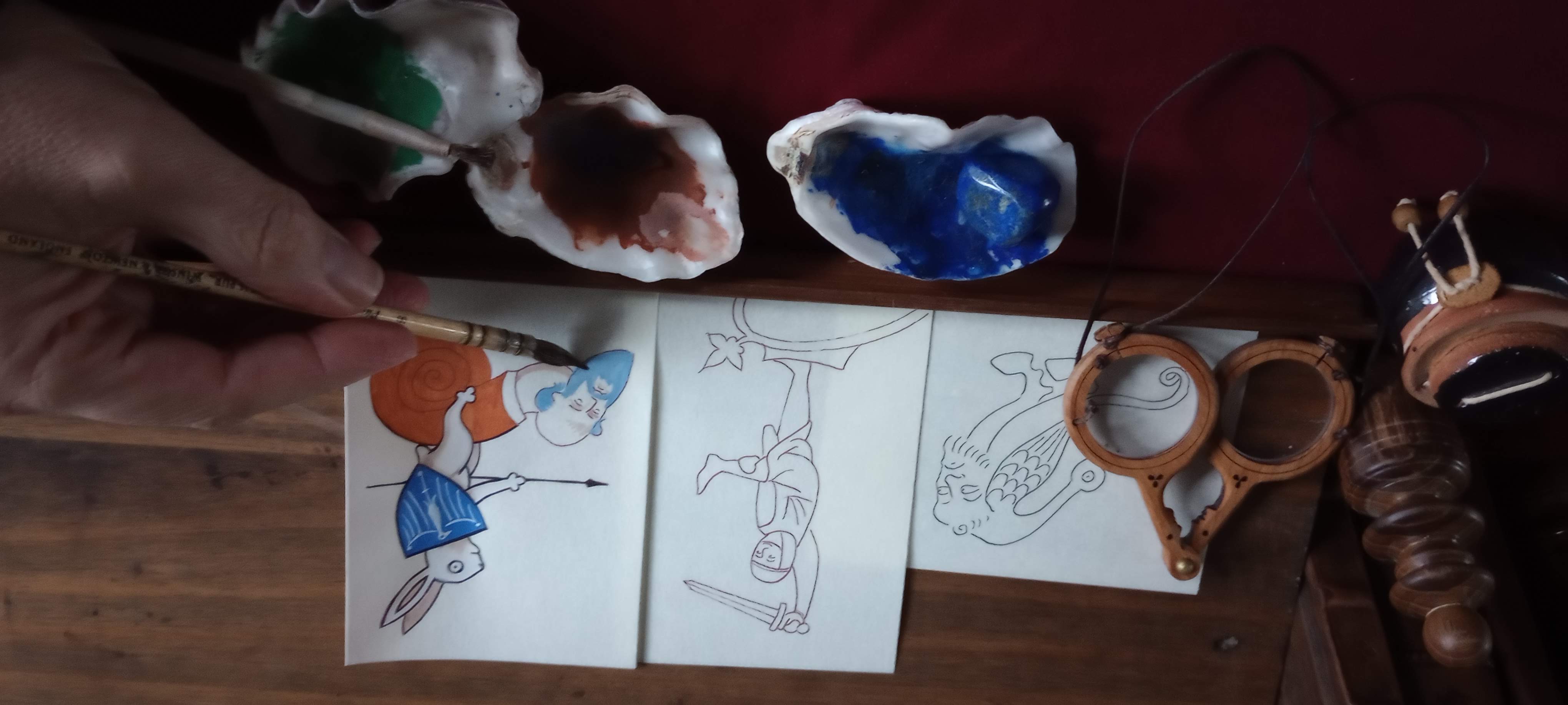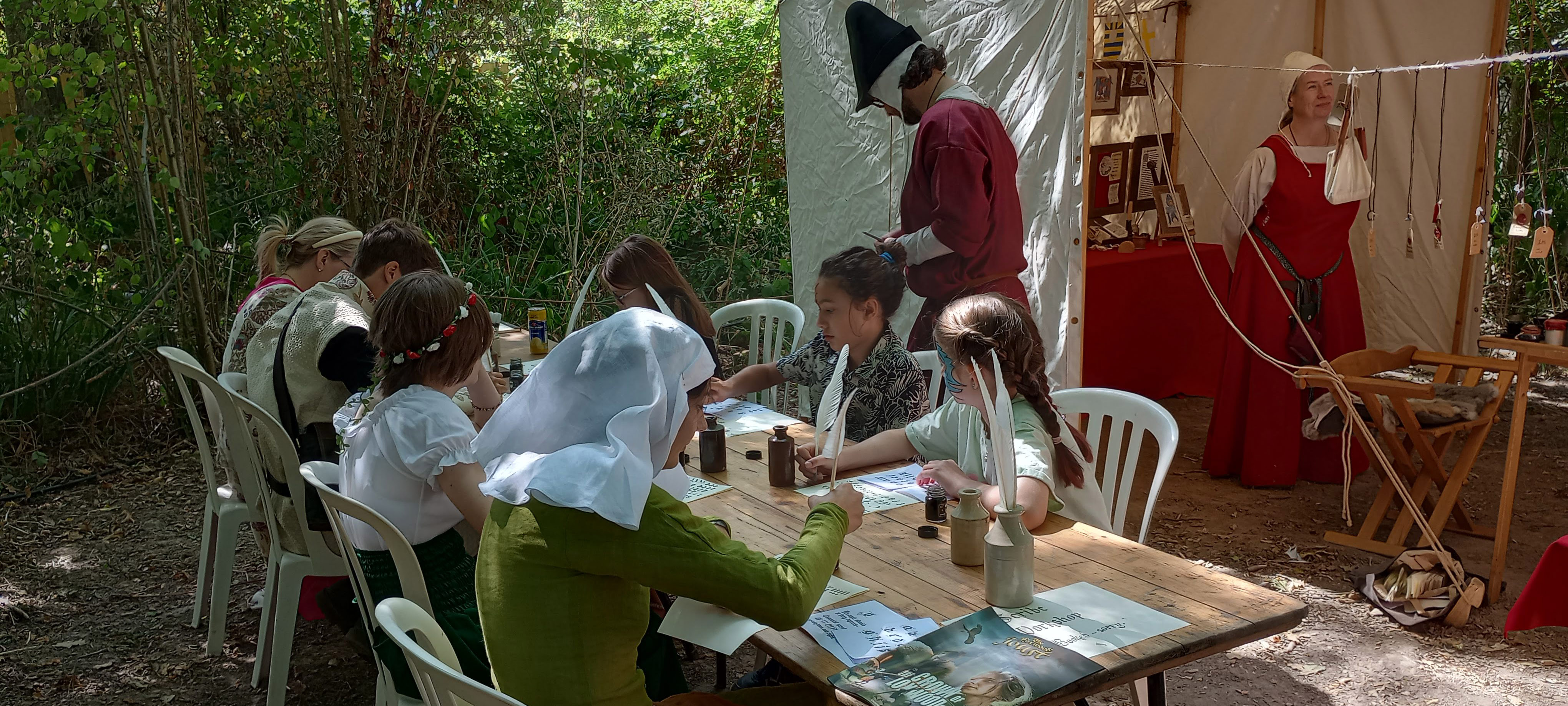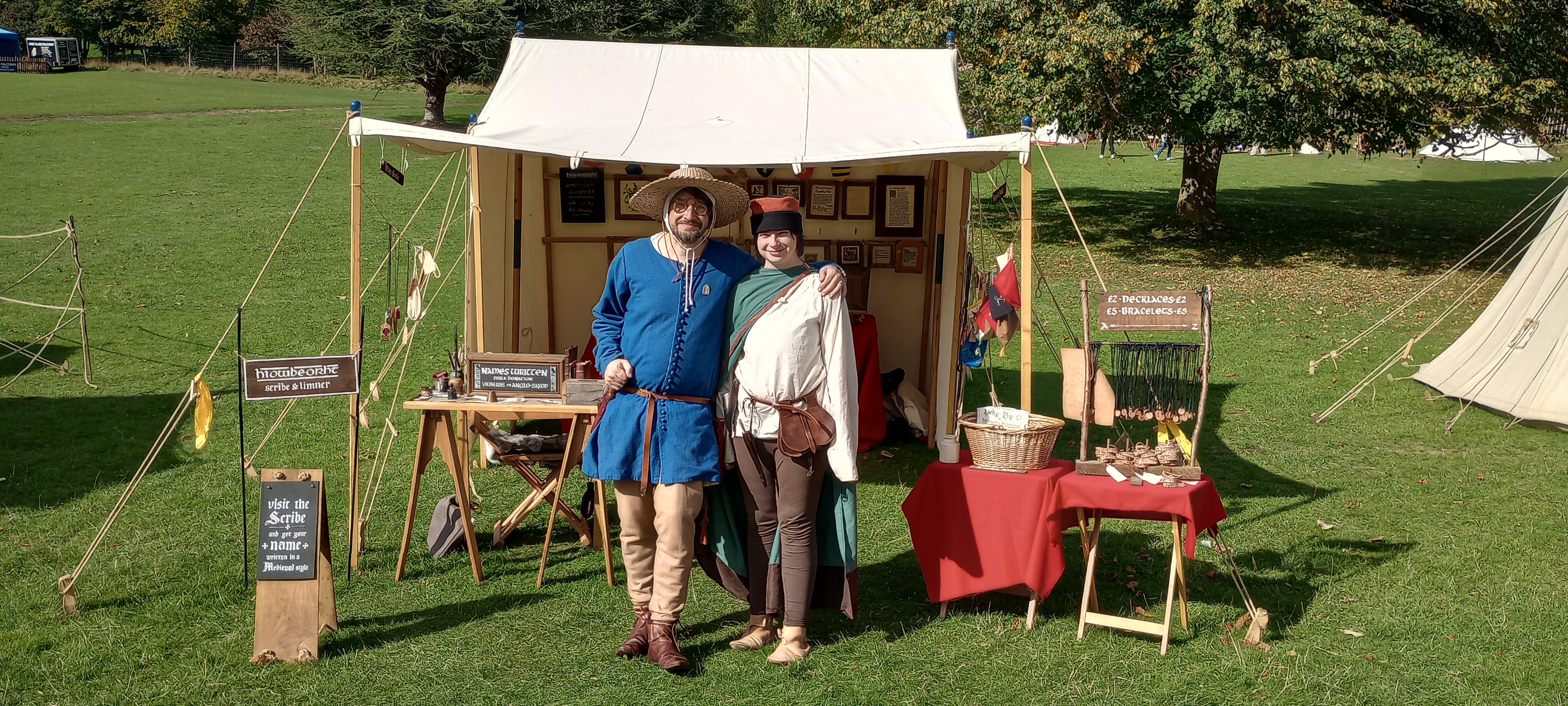 We are a family of artisans who travel around the country demonstrating medieval artistic skills at events, battles and markets. We also sell genuine unique artworks at a reasonable price. And we run various workshops and have-a-go sessions. We always try to be authentic and love immersing ourselves in the world of the middle ages. We began trading in 2020, so we're pretty new to this.